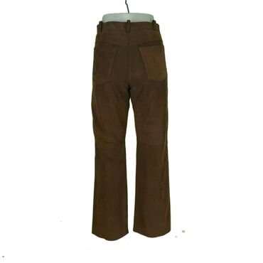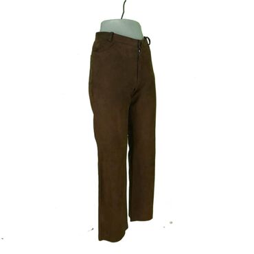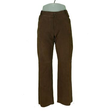 BraonKožne pantalone, vel.. M marka: veličina: m materijal: koža dužina: 100 cm prečnik struka: 42-44 cm unutrašnja nogavica: 74 cm prečnik butine: 23 cm šifra: mo367 moto ženske pantalone u dobrom stanju (pogledajte slike).. Tamnobraon boje, od prevrnute kože, visok struk, ravan model nogavica, postavljene, zakopčavanje na metalni rajsferšlus i dugme, dva prednja, dva zadnja džepa.. Trag nošenja u vidu tačkica površinskog oštećenja na butini i dnu leve nogavice.