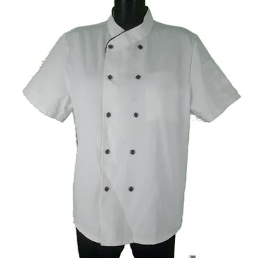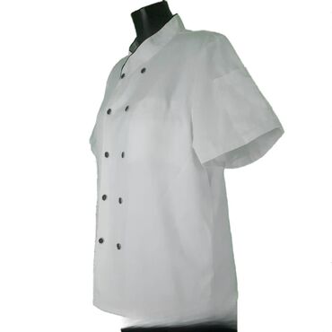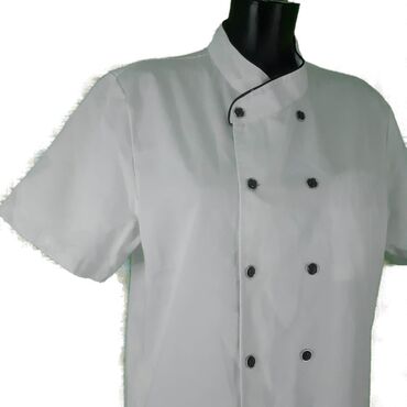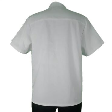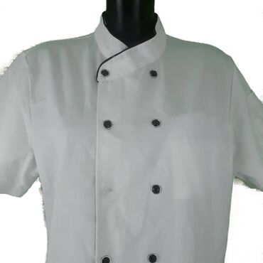Kuvarska bluza, vel.l ženska marka: engel veličina: l materijal: pamuk 100% dužina: 70 cm ramena: 45 cm prečnik grudi: 55 cm dužina rukava: 23 cm šifra: ra378 profi ženska kuvarska bluza u odličnom stanju (pogledajte slike).. Bela, sa crnim dugmićima, kratak rukav.