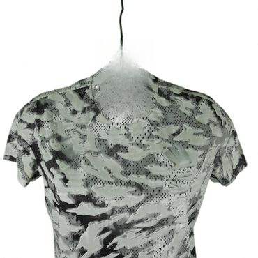 Ženska majica kratkih rukava - Model: klasičan kroj, okrugli izrez. - Materijal: glatka, lagana i elastična poliesterska tkanina (sportski tip). - Boja i dizajn: crno‑siva sa gradijentnim ef...