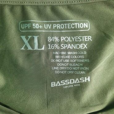 Majica bassdash, vel.. Xl, upf 50+ marka: bassdash veličina: xl materijal: spandeks 16% poliester 84% dužina: 75 cm ramena: 54 cm prečnik grudi: 66 cm šifra: bk7124 originalna muška majica bassdash u odličnom stanju, kao nova (pogledajte slike).. Maslinasto zelene boje, ovalan izrez, mrežica na donjem delu leđa i ispod pazuha, zaštita od sunca spf 50+.. Pogodna za sportske aktivnosti na otvorenom, lov i ribolov.