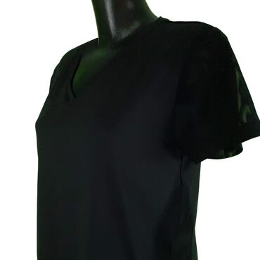 Siva ženska majica/tunika kratkih rukava, melirane teksture (svetlosiva sa tamnosivim detaljima). Okrugao izrez, ravnog kroja sa blago produženim donjim rubom. Sa obe strane nalaze se funkcionalni ...