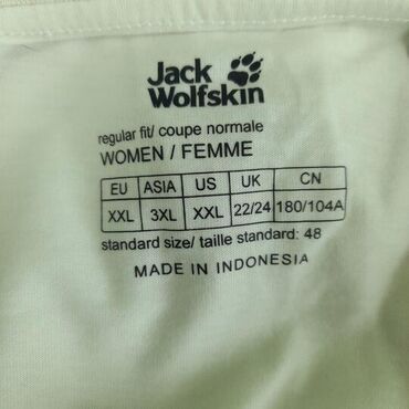 Majica jack wolfskin, vel.. Xxl marka: jack wolfskin veličina: xxl materijal: pamuk 52% poliester 48% dužina: 70 cm ramena: 50 cm prečnik grudi: 62 cm šifra: bk5821 originalna ženska majica jack wolfskin u odličnom stanju, kao nova (pogledajte slike).. Bele boje, ovalan izrez, izrađena od mešavine organskog pamuka i poliestera, prijatna za nošenje.