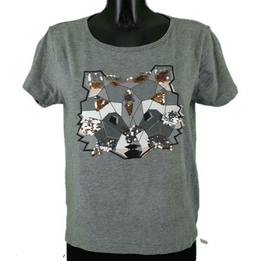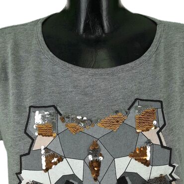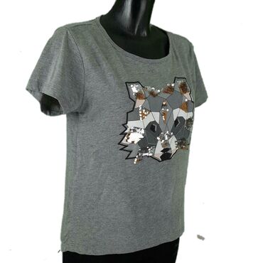 Ženska majica kratkih rukava - Model: klasičan kroj, okrugli izrez. - Materijal: glatka, lagana i elastična poliesterska tkanina (sportski tip). - Boja i dizajn: crno‑siva sa gradijentnim ef...