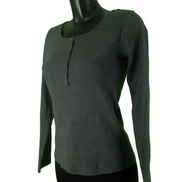 Paket majica/bluza – više modela, veličine S i M 1) Tamnoplava rolka od vune - Veličina: S - Poluobim: 38–50 cm - Dužina: 62 cm - Materijal: vuna - Cena: 200 RSD 2) Svetlosiva H&M bluza sa široki...