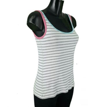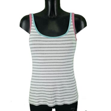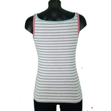 PrugastiMajica marc cain, vel.. S marka: marc cain veličina: s materijal: pamuk, elastin dužina: 54 cm ramena: 30 cm prečnik grudi: 42 cm šifra: bk5762 originalna ženska majica marc cain u odličnom stanju (pogledajte slike).. Belo-sive boje, prugasta, pamučna, pogodna za različite sportske aktivnosti.