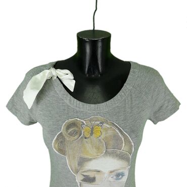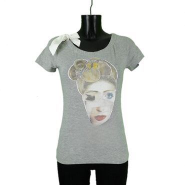 MMajica moschino, vel.. M/38, love marka: love moschino veličina: m/38 materijal: pamuk 93% elastin 7% dužina: 56 cm ramena: 40 cm rukavi: 15 cm prečnik grudi: 44 cm šifra: bk5312 originalna ženska majica love moschino u odličnom stanju (pogledajte slike).. Svetlosive boje, ovalan izrez sa dekorativnom trakom, rastegljiva zbog visokog udela elastina u tkanju, prijatna za nošenje.