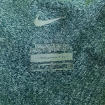 Majica nike, vel.. S, dri- fit marka: nike veličina: s materijal: poliester 100% dužina: 68 cm ramena: 46 cm rukavi: 16 cm prečnik grudi: 47 cm šifra: bk5309 originalna ženska sportska majica nike u odličnom stanju (pogledajte slike).. Zelenkasto-sive boje, v izrez.. Pogodna za trčanje ili druge sportske aktivnosti.. Preporuka!
