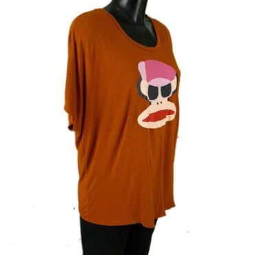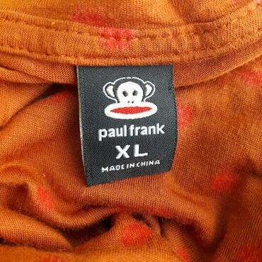 Majica paul frank, vel.. Xl marka: paul frank veličina: xl materijal: viskoza 100% dužina: 67 cm ramena: 48 cm prečnik grudi: 73 cm šifra: bk5778 originalna ženska majica paul frank u odličnom stanju (pogledajte slike).. Cigla boje, tufnast dezen, aplikacija na prednjoj strani, ovalan izrez, izrađena od čiste viskoze, izuzetno prijatna za nošenje.. Mali tragovi nošenja bez oštećenja.