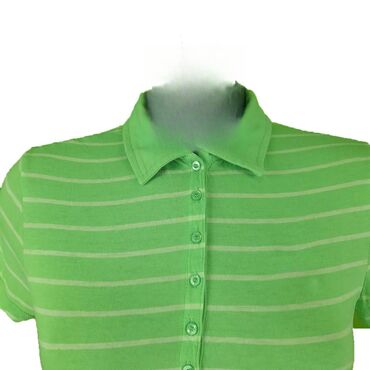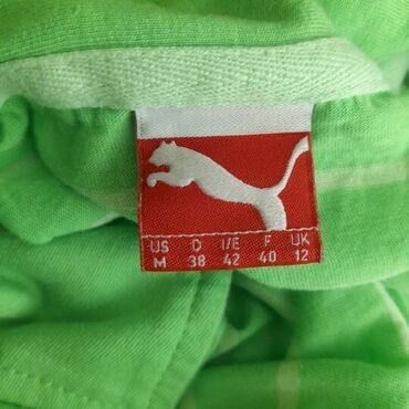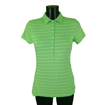 Majica puma, vel.. M/38 marka: puma veličina: m/38 materijal: pamuk dužina: 68 cm ramena: 40 cm prečnik grudi: 47 cm šifra: bk5807 originalna ženska majica puma u odličnom stanju (pogledajte slike).. Svetlozelene boje, prugast dezen, polo kragna, pamučna, prijatna za nošenje.