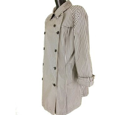 ŠarenoMantil fuchs schmitt, vel.. L/44 marka: fuchs shmitt veličina: l/44 materijal: poliester 100% dužina: 88 cm ramena: 48 cm rukavi: 58 cm prečnik grudi: 63 cm šifra: ja0247 originalni ženski mantil fuchs shmitt u odličnom stanju (pogledajte slike).. Crno-bele boje, kariranog dezena.. Zakopčavanje na dugmad, zatezni kaišići na rukavima, postavljen.. Nedostaje kaiš u struku.