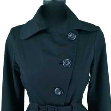 CrnaMantil h&m, vel.. Xs/34 marka: h&m veličina: xs/34 materijal: pamuk 100% dužina: 87 cm ramena: 39 cm rukavi: 62 cm prečnik grudi: 44 cm šifra: ja0366 originalan ženski mantil h&m u odličnom stanju (pogledajte slike).. Crne boje, pamučna, postavljena, sa kaišem u struku