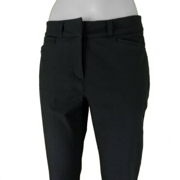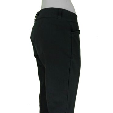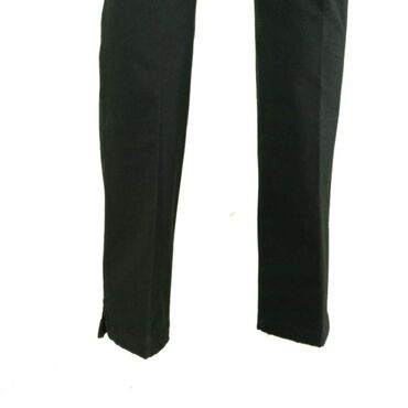 Crne ženske pantalone – uskog, ravnog kroja - Boja: crna, jednobojna - Kroj: slim/prav, dužina do članka - Struk: srednje visok, elastičan pojas bez vidljivog kopčanja - Materijal: gladak, rastegl...