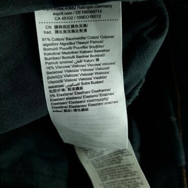 Pantalone esprit, vel.. Xs/32 marka: esprit veličina: xs/32 materijal: pamuk 81% viskoza 16% elastin 3% dužina: 105 cm prečnik struka: 33 cm unutrašnja nogavica: 81 cm prečnik nogavice dole: 13 cm šifra: bk6540 originalne ženske pantalone esprit u odličnom stanju (pogledajte slike).. Crne boje sa primesama tamnozelene, izrađene od kvalitetne kombinacije materijala koja uključuje i viskozu, srednje debljine, kroj nogavica koji se sužava na dole.