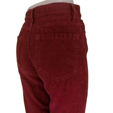Pantalone hollister, vel.. S/w26, somotske marka: hollister veličina: s/w26 materijal: pamuk 100% dužina: 104 cm prečnik struka: 35 cm unutrašnja nogavica: 74 cm prečnik nogavice dole: 15 cm šifra: bk5166 originalne ženske pantalone hollister u odličnom stanju (pogledajte slike).. Bordo boje, prugasti somot, ultra high-rise mom pant model.. Dva prednja džepa, imitacija džepova pozadi.. Preporuka!