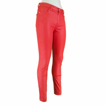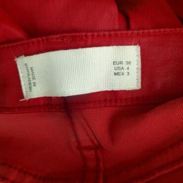 LikraPoliesterPantalone mango, vel.. S/36, belle marka: mango, veličina: s/36 materijal: poliester elastin dužina: 96 cm prečnik struka: 38 cm unutrašnja nogavica: 73 cm prečnik nogavice dole: 12 cm šifra: bk6771 originalne ženske pantalone mango u odličnom stanju, kao nove (pogledajte slike).. Crvene boje, kroj nogavica koji se sužava na dole, izrađene od materijala koji podseća na kožu, rastegljive zbog udela elastina u tkanju.