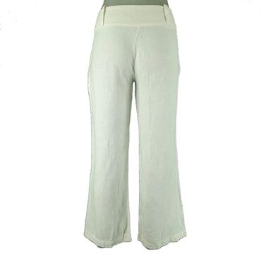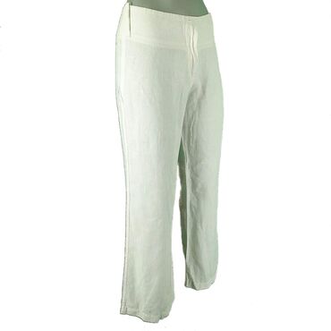 Pantalone rinascimento, vel.. L, lan marka: rinascimento veličina: l materijal: lan dužina: 95 cm prečnik struka: 40 cm unutrašnja nogavica: 72 cm prečnik nogavice dole: 26 cm šifra: bk6157 originalne ženske pantalone rinascimento u odličnom stanju (pogledajte slike).. Bele boje, izrađene od čistog lana, lagane, letnje, prijatne za nošenje, blago zvonast kroj nogavica.