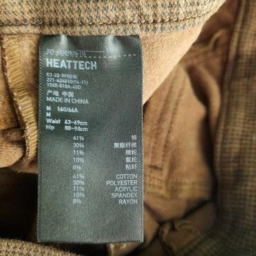 Pantalone uniqlo, vel.. M, heattech marka: uniqlo veličina: m materijal: pamuk 41% poliester 30% akril 11% elastin 10% viskoza 8% dužina: 94 cm prečnik struka: 33-38 cm unutrašnja nogavica: 70 cm prečnik nogavice dole: 12 cm šifra: bk6739 originalne ženske pantalone uniqlo u odličnom stanju (pogledajte slike).. Braon boje, sitan pepito dezen, imitacija zakopčavanja i prednjih džepova, dva zadnja džepa, izrađene od kvalitetne kombinacije materijala, tople, srednje debljine.