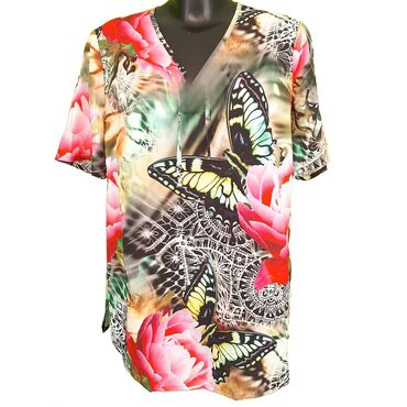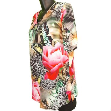Nova tunika, sa etiketom, italijanski brend, prelep dezen, divan tegljiv materijal, satenska traka koja moze da se vezuje kako zelite, rukavi idu blago u zvono. Fenomenalna. Dinenzije, duzina tuni...