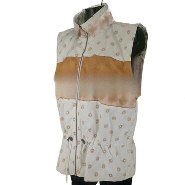 Ženska prsluk- bunda bez rukava - Model: dugačak, topli prsluk od mekane veštačke krzne teksture, bez rukava, sa blagim kragnom/okovratnikom - Dizajn: vodoravne „puf“ sekcije koje daju volumen i e...