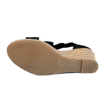 Ženske sandale na platformu - Veličina: 39 (oznaka na đonu) - Gornji deo: kombinacija crne trake i trake u printu imitacije zmijske kože - Kopčanje: dve metalne kopče sa bočne strane za podešavanj...
