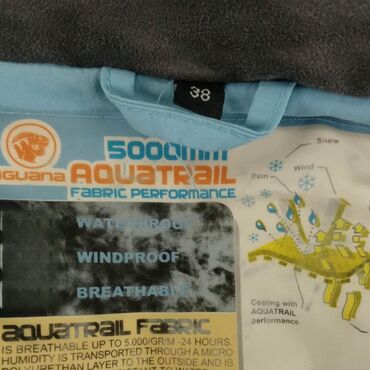 Ski jakna iguana 5k, vel.. M/38, aquatrail marka:iguana veličina: m/38 materijal: poliester dužina: 64 cm ramena: 46 cm rukavi: 59 cm prečnik grudi: 56 cm šifra: ja0122 originalna ženska ski jakna iguana u odličnom stanju (pogledajte slike).. Kombinacija sive, bele i svetloplave boje, kapuljača sa mrežastom postavom koja se skida, lufteri ispod pazuha, džep za ski pas na levom rukavu, pojas za zatezanje unutra, zatezači na rukavima.. Puno džepova, dva prednja džepa na grudima sa vodootpornim rajsferšlusima, dvotruki klizači na rajsferšlusu.. Topla, 5000 mm vodootporna, 5000 gr/24h prozračna, vetronepropusna.. Preporuka!