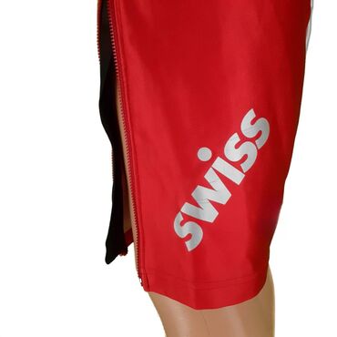 Šorts descente, vel.. S/m marka: descente veličina: s/m materijal: poliester 85%, poliuretan 15% dužina: 54 cm prečnik struka: 47 cm prečnik butine: 30 cm šifra: bk3801 originalan muški sportski šorts descente u odličnom stanju (pogledajte slike).. Crvena boja sa logotipom i printom swiss koji ima par linija, malo je ispucao.. Veoma jak, deblji materijal, topao iznutra.. Sa strane dva rajsferšlusa duž cele butine tako da se može i tako skidati.. U struku dva kaišića sa obe strane za podešavanje.. Na leđima ojačan.. Veoma kvalitetan.