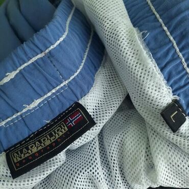 Šorts napapijri, vel.. L marka: napapijri veličina: l materijal: poliester 100% dužina: 44 cm prečnik struka: 43-49 cm (guma) unutrašnja nogavica: 21 cm prečnik butine: 32 cm šifra: bk5656 originalni sportski šorts napapijri u odličnom stanju (pogledajte slike).. Svetloplave boje, elastična guma i učkur u struku, mrežasto postavljen, klasičan.