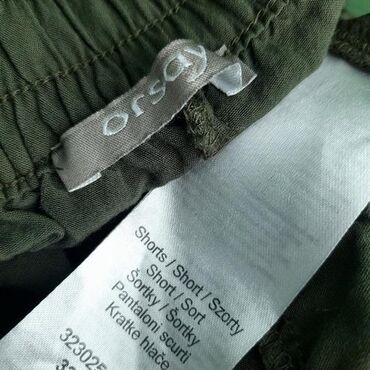 Šorts orsay, vel.. S/36, viskoza marka: orsay veličina: s/36 materijal: viskoza 100% dužina: 60 cm prečnik struka: 37-40 cm prečnik butine: 32 cm šifra: bk7374 originalni šorts orsay u odličnom stanju (pogledajte slike).. Maslinasto zelene boje, guma i učkur u struku, viskozan, izuzetno prijatan za nošenje.