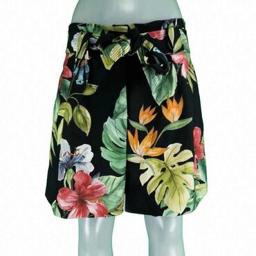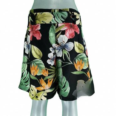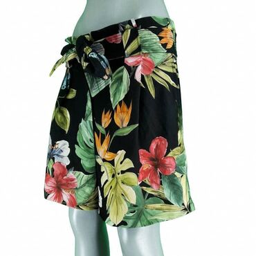 Šorts/suknja mango, vel.. L/42 marka: mango veličina: l/42 materijal: poliester 94% elastin 6% dužina: 46 cm prečnik struka: 42 cm prečnik butine: 37 cm šifra: bk7429 originalni šorts/suknja mango u odličnom stanju, kao nov (pogledajte slike).. Crne boje, cvetan dezen, sa trakom za vezivanje u struku, model koji podseća na suknju.