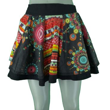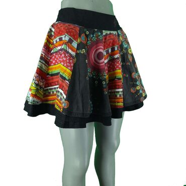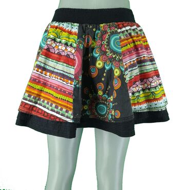 ŠarenoSuknja desigual, vel.. 11-12 g.. Marka: desigual veličina: 11-12 g. materijal: pamuk 100% dužina: 39 cm prečnik kukova: 53 cm šifra: bk6134 originalna dečija suknja desigual u odličnom stanju (pogledajte slike).. Šarenog dezena, sa karnerima, pamučna.. Crna boja malo bleda na nekim delovima.