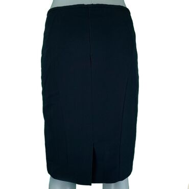 Elegantna crna suknja olovka sa detaljima,velicina 42. - Kroj: olovka/uža silueta, dužina iznad kolena do kolena - Dizajn: dekorativni kontrastni šavovi koji vizuelno izdužuju figuru - Ukras: sate...