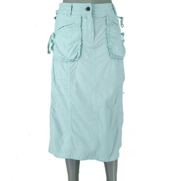 MidiSuknja marc cain, vel.. M/n3 marka: marc cain veličina: m/n3 materijal: pamuk 98% poliuretan 2% dužina: 75 cm prečnik kukova: 51 cm šifra: bk5727 originalna suknja marc cain u odličnom stanju (pogledajte slike).. Svetloplave boje, dužine ispod kolena, zakopčavanje na dugme, i rajsferšlus, dva prednja džepa, dva džepa pozadi, izrađena od kvalitetne kombinacije materijala.