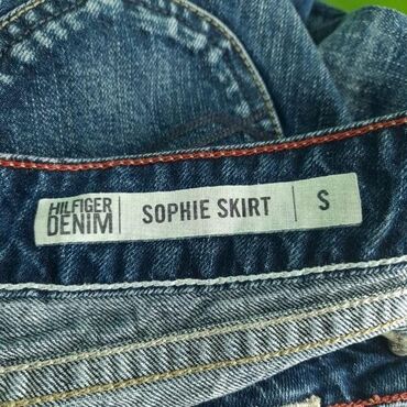 MiniSuknja tommy hilfiger, vel.. S, sophie skirt marka: tommy hilfiger veličina: s materijal: pamuk 100% dužina: 34 cm prečnik struka: 39 cm kukovi: 46 cm šifra: bk7420 originalna suknja tommy hilfiger u odličnom stanju (pogledajte slike).. Tamnoplavi teksas, mini dužine, klasična.
