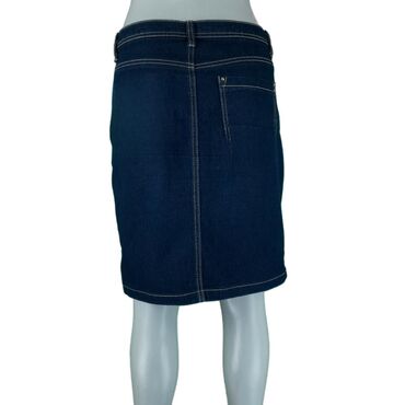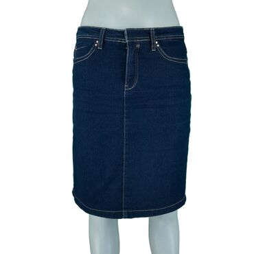 PoliesterSuknja yessica, vel.. S/36, teksas marka: yessica veličina: s/36 materijal: pamuk 68% poliester 18% viskoza 13% elastin 1% dužina: 53 cm prečnik kukova: 46 cm šifra: bk6434 originalna suknja yessica u odličnom stanju (pogledajte slike).. Tamnoplavi teksas, dužine do kolena, izrađena od kvalitetne kombinacije materijala, rastegljiva zbog udela elastina u tkanju.