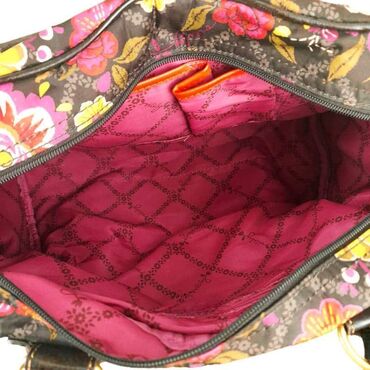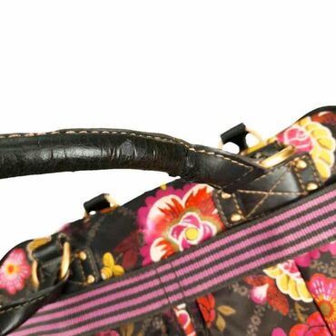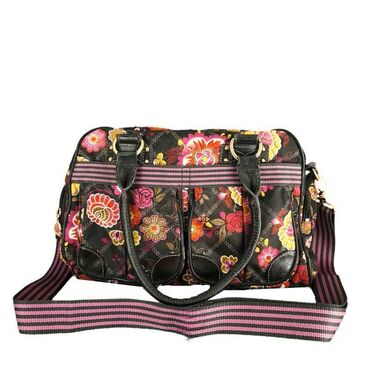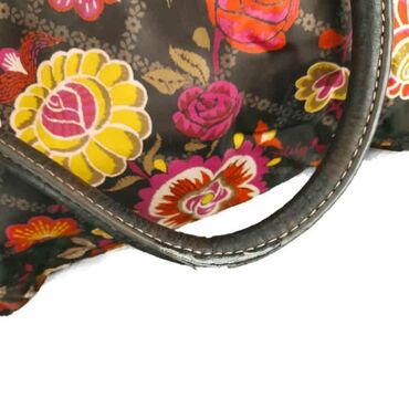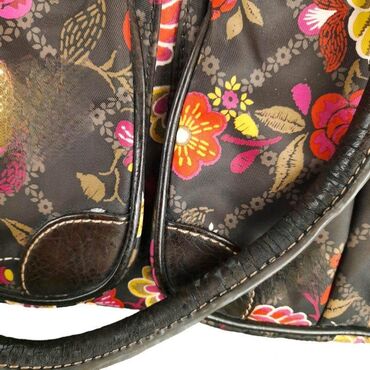 LjubičastaTorba oilily marka: oilily dimenzije: 33x23x12 cm materijal: poliester šifra: to231 originalna torba oilily u odličnom stanju (pogledajte slike).. Šaren, cvetan dezen, sa tankim ručkama za nošenje u ruci i podesivim kaišem za nošenje preko ramena, jedna velika pregrada, dosta spoljnih džepova.. Tragovi korišćenja na ručkama torbe - pogledati slike.
