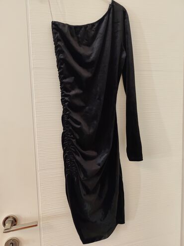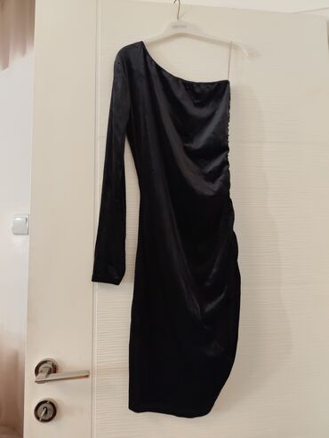 NOVO.Elegantna crna haljina na jedno rame