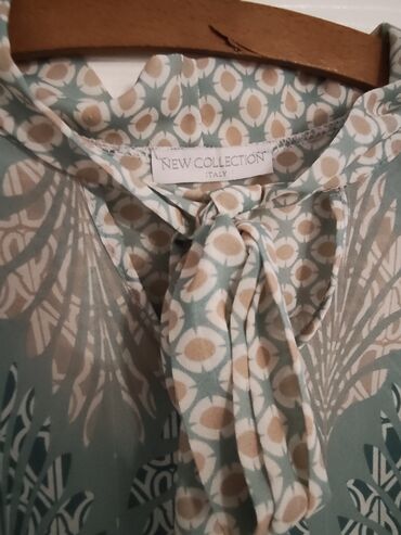 Elegantna ženska bluza marke New Collection Italy, sa interesantnim dezenom i mašnom oko vrata. Bluza je dugih rukava sa manžetnama i blago je providna. Idealna za svečane prilike ili poslovni izgled. Nikad nosena, nova, odgovara za m/L