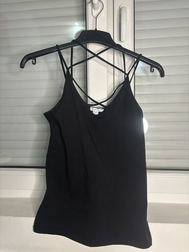 Crna ženska majica na bretele sa ukrštenim trakama oko dekoltea.