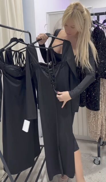 Crna uska haljina midi dužine sa dugim rukavima i četvrtastim izrezom. Gornji deo ima korzet-liniju sa diskretnom čipkom i efektnim šavovima koji ističu figuru. Na leđima je ukrasno vezivanje (čipka/pertlanje) koje omogućava dodatno prilagođavanje, a materijal je elastičan i lepo prijanja. Klasičan kroj prikladan za večernje prilike i svečanosti. Dostupna na ofingerima u više komada.