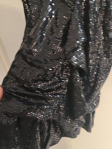 Elegantna midi haljina (odgovara veličini S/M) jednom nošena. - Materijal: glatka satenska tkanina sa suptilnim sjajem i finim šljokičastim odsjajem. - Kroj: ženstvena silueta sa strukom naglašeni...
