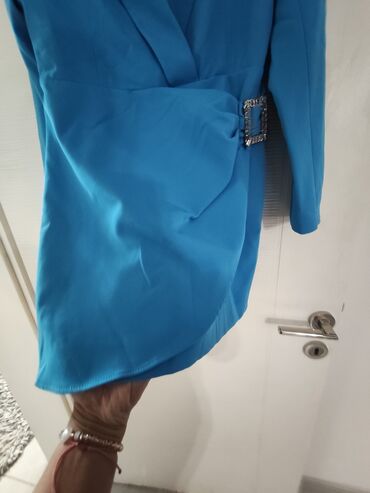 CirkoniElegantna tirkizna haljina-sako brenda Robin, veličine 40. Haljina ima kragnu i kopča se preklopom sa ukrasnom kopčom sa cirkonima na boku. Ima duge rukave i praktične bočne džepove. Idealna za večernje izlaske ili posebne prilike. Samo jednom nosena, bukvalno nova.