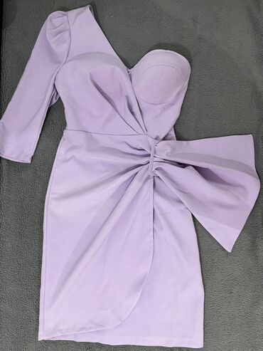 - Detalji: efektan nabor i veliki dekorativni mašnama/čvor na struku koji naglašava figuru; blagi preklop na suknji