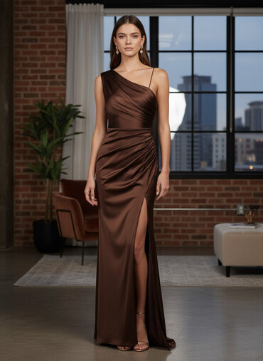 Idealna za svečane prilike, večernje izlaske i događaje. Subtilni nabori i asimetrija vizuelno izdužuju figuru i naglašavaju liniju tela.