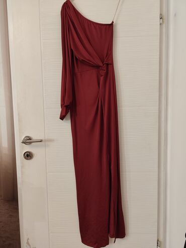 Elegantna duga crvena(bordo) haljina na jedno rame. NOVO.