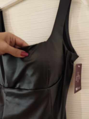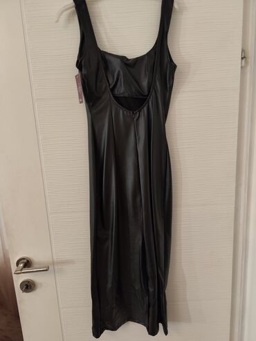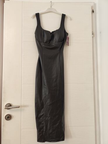 Crna midi haljina od eko kože - Model: uska, duga do listova (midi)