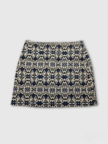 Mini suknja sa zebrastim printom i resama Gs - Model: mini suknja, ravnog kroja sa preklopnim efektom na prednjem delu - Dizajn: crno-beli zebrasti dezen; ukrasne crne rese u kosoj liniji i duž por...