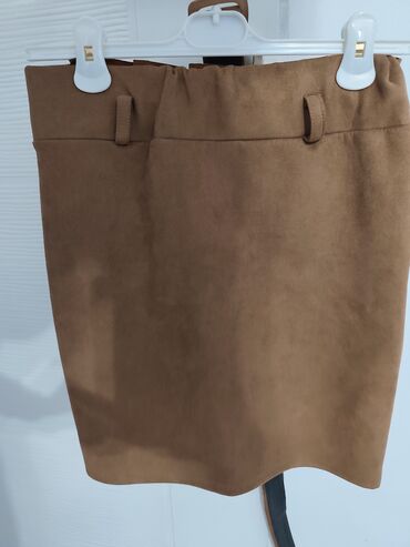 VelurBraon mini suknja od imitacije antilopa sa kaišem. Suknja ima visoki struk i ukrasne faltne napred. Kaiš je iste boje i materijala kao i suknja. novo