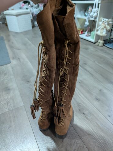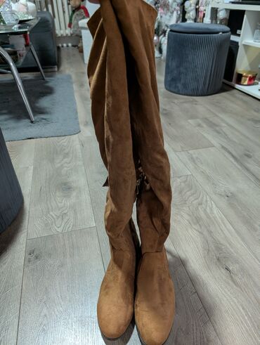 Kožne ženske čizme do kolena – konjak braon br 39 naznačeno - Materijal: prirodna koža spolja, verovatno kožna ili kvalitetna sintetička podloga; čvrst gumeni/ders plitki đon - Visina: do kolena, ...
