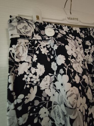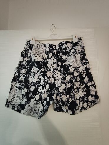Elegantne ženske kratke pantalone sa cvetnim dezenom, veličine 38. Idealne za tople dane, sa diskretnim džepovima i ukrasnim dugmadima.