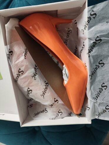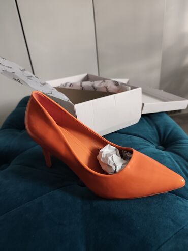 Elegantne ženske slingback cipele na štiklu u intenzivno narandžastoj boji. - Materijal gornjišta: satenast finiš sa sjajem - Model: špicasti vrh, otvorena peta sa elastičnom trakom - Detalj: veli...1 400 RSD